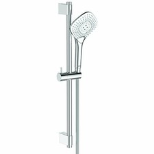 Ideal Standard Idealrain set de douchette BC544AA composé d'une barre de douche 900 mm Fixation réglable en hauteur avec coulisseau à bouton poussoir pivotant Douchette à main 3 fonctions diamètre 100 mm (spray types pluie Averse et jet de massage) Fonction anti-calcaire Flexible de douche "Idealflex" 1600 mm