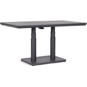 Table avec structure en aluminium peint et plateau en pierre frittée - Hauteur réglableÉlégante et fonctionnelle, cette table allie matériaux de haute qualité et design moderne :Structure : Aluminium thermolaqué (polyester) pour une meilleure résistance aux intempéries et à la corrosion.Plateau : Pierre frittée (pierre naturelle traitée à haute température), épaisseur 11 mm, résistante aux rayures, à la chaleur et aux taches.Hauteur réglable : de 51 à 72 cm, avec système de poignée pour un réglage facile et sans effort.Quincaillerie : Visserie en acier inoxydable pour une durabilité accrue, même en extérieur.Piètement prêt à monter : Montage facile grâce aux instructions fournies.Dimensions :Largeur : 140 cmProfondeur : 80 cmHauteur réglable : de 51 à 72 cmParfaite pour les espaces intérieurs et extérieurs, les salons modernes, les terrasses ou les jardins. Idéale comme table à manger, table de salon ou table polyvalente.