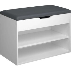 Le porte-chaussures polyvalent de tectake met de l'ordre dans votre couloir - avec élégance. Les deux étagères ouvertes offrent suffisamment d'espace pour six paires de chaussures, tandis que le compartiment rabattable supérieur est idéal pour ranger les foulards, les gants et les chapeaux. Le confort est assuré par le siège rembourré, dont la couleur est parfaitement assortie à la surface de l'étagère. Les panneaux MDF robustes et le revêtement en mélamine confèrent à la construction compacte un haut degré de stabilité et un aspect attrayant qui peut être facilement combiner avec différents styles d'ameublement. Caractéristiques Techniques: Dimensions totales (lxPxH) : env. 60 x 30 x 43,5 cmDimensions intérieures compartiment inférieur (lxPxH) : env. 57x 29 x 13 cmDimensions intérieures compartiment supérieur (lxPxH) : env. 57 x 29 x 14 cmDimensions intérieures du compartiment rabattable (lxPxH) : env. 57 x 27 x 8,5 cmÉpaisseur du coussin d'assise : env. 2 cmÉpaisseur du panneau MDF : environ 1,5 cmCapacité de charge : 120 kgPoids: env. 11,5 kgMatériau : panneau MDF avec revêtement de mélamine, 100 % polyuréthane