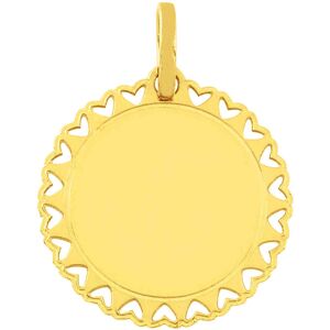 Réalisée en or 18 carats, cette jolie médaille brillante trouve sa beauté dans ses petits coeurs ajourés. Elle sera un merveilleux cadeau à offrir lors d’un baptême ou en toute autre occasion. Une jolie manière de déclarer son amour.Ce pendentif, accompagné de son certificat d’authenticité, est prés