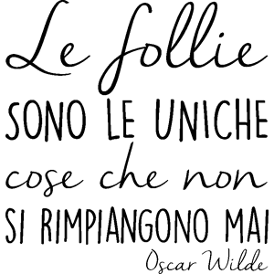 Des stickers muraux citations pour la déco ! Avec les stickers citation et ce sticker Le follie sono le uniche cose che non si rimpiangono mai - Oscar Wilde, vous pourrez enfin décorer l'intérieur de votre cuisine à votre guise avec leur aide ! Où coller cet autocollant déco ? Ces stickers proverbe