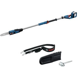 GKE 18V-25 TP Professional: Informations complémentaires Points forts du produit Si vous êtes à la recherche d’un outil puissant permettant d’élaguer efficacement les haies hautes et des arbres sans avoir à utiliser d'essence et sans fumées, l'élagueuse sur perche GKE 18V-25 TP Professional est l'outil qu'il vous faut. Avec cet outil, vous êtes en mesure d’atteindre des branches hautes sans effort et sans échelle grâce à sa perche télescopique de 2,9 m. Dotée d'un puissant moteur 18V sans charbons et d'un variateur de vitesse, l'élagueuse sans fil permet de couper des branches épaisses avec facilité et précision. De plus, la conception robuste de l’outil et le système de tension de chaîne avec écrou captif magnétique réduisent les besoins d'entretien et rendent l'entretien plus facile. Équipement et application L'élagueuse sur perche GKE 18V-25 TP Professional est l’outil idéal pour tailler des branches épaisses en hauteur. Compatible avec le Professional 18V System Bosch et avec l’alliance batteries multimarques AMPShare. Informations complémentaires L'élagueuse sur perche GKE 18V-25 TP Professional démarre très facilement, demande peu d’entretien et offre une longue durée de vie. Elle effectue jusqu’à 130 coupes par charge avec une batterie ProCORE 18V 5.5 Ah et affiche un faible niveau sonore de 97 dB(A). Elle dispose d'une chaîne Oregon de haute qualité à pas de 0,325 pouce et un guide-chaîne de 25 cm pour des résultats d’élagage précis. Un crochet de branche situé à l’avant de l’outil permet d'élaguer facilement dans des espaces difficiles d'accès. Il ne produit pas de gaz d’échappement et se divise en deux parties pour un transport facile.
