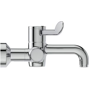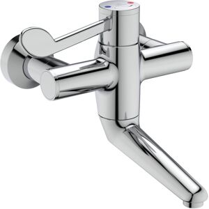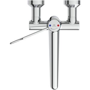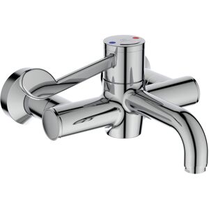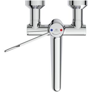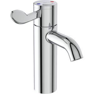 Thermostat de lavabo Ideal Standard CeraPlus 2 A6692AA DN15 bec rigide auto-videur Projection 110 mm Hauteur du bec 107 mm tuyaux de raccordement flexibles G 3/8 Levier de commande en métal Longueur 120mm Fixation avec raccord à vis d'arbre M 28 x 1 5mm adapté à la désinfection thermique à l'aide de l'outil spécial fourni Disconnecteur anti-retour DVGW intrinsèquement sûr Poignées de commande en métal avec marquage permanent rouge/bleu Cartouche thermostatique avec élément d'expansion de cire Réglage de la température avec protection contre les brûlures d'eau chaude Limiteur de température d'eau chaude intégré Test de durée de vie EN 1111 Comportement sonore DIN 4109 Groupe 1