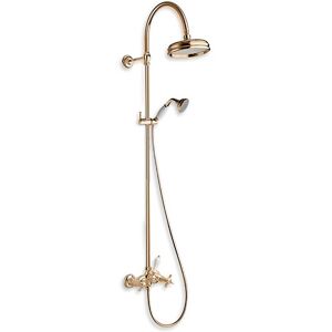 Colonne de douche complète Or Rose Brosse Pvd CHAMBORD: pour une salle de bain au style rétro ! Gamme: CHAMBORD. Finition: Or Rose Brossé Pvd . Avec robinetterie, flexible et douchette rétro. Inverseur manuel poignée céramique. Pomme de douche Ø 200 mm laiton anticalcaire. Tube recoupable. Garantie