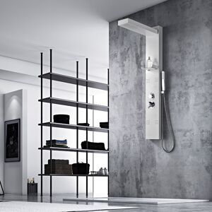 Colonne de douche blanche hydromassante multifonction A212 Apportez style, clarté et confort à votre salle de bain en équipant votre douche à l'italienne de cette colonne de douche blanche d'hydromassage ultra design ! 4 Carrés de micro jets ainsi qu'un grand dôme de pluie vous masseront le corps entier pour une détente totale. La douchette, les jets et le dôme sont pilotés à partir de 3 boutons sélecteurs que vous pourrez activer ensemble ou séparément. Le quatrième bouton en façade de cette colonne de douche blanche est le robinet mitigeur permettant de régler la température de l'eau. Dimensions de la coque de la colonne : 20 x 57.5 x 135 cm. Le + de la colonne de douche blanche : une petite étagère porte-savon en façade bien pratique ! ------------------ Garantie 12 mois. Les photos présentes sur notre site sont interdites à la reproduction à des fins commerciales sauf accord avec la société DISTRIBAIN.