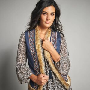 Jouez la carte de la décontraction bohème avec cette veste droite sans manches en suédine, agrémentée de fausse fourrure. A porter sur un col roulé ajusté ou une chemise, avec manches bouffantes ou froncées sur les épaules, pour composer un jeu de volumes sympa !