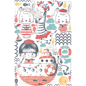 Des stickers animaux pour votre déco ! Avec les stickers muraux animaux multicolore et ce Stickers girafe et lapins marins, vous vous approprierez enfin votre intérieur ! Dimension du sticker : La planche de H75 x L50 cm, le sticker girafe mesure H40 x L20 cm – le grand sticker lapin mesure H35 x L