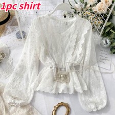 Chemise ample en dentelle pour femmes, col en v, manches longues, pull en mousseline de soie, haut d'automne, chemisier de rue Simple et élégant