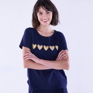Quand l'indispensable t-shirt se pare d'un imprimé pour vous toucher en plein coeur... Bien coupé et animé d'un imprimé coeurs dorés, il signe une allure actuelle avec une touche d'éclat ! Efficace en pantalon et en sandales, il se plaira autant avec une jupe longue et des tennis.