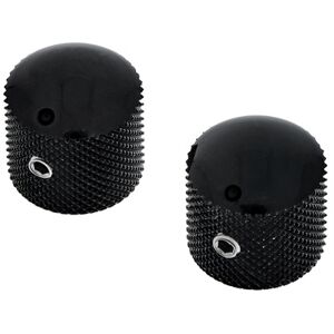 Schaller Dome Knobs BC, Set de 2 boutons de potentiomètres, En laiton, Forme cylindrique, Boutons moletés, Fixation par vis sans tête, Diamètre extérieur: 18,3 mm, Hauteur: 18 mm, Pour axe d'un diamètre de 6,0 mm, Poids pièce: 26 g, Finition: Chrome noir, Fabriqué en Allemagne, N° Schaller: 15020400