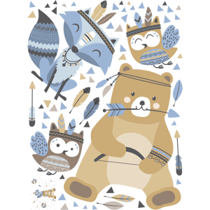Des stickers animaux pour votre déco ! Avec les stickers muraux animaux multicolore et ce Stickers ourson chasseur de plumes, vous vous approprierez enfin votre intérieur ! Dimension du sticker : La planche de H65 x L50 cm, le grand sticker ourson mesure H45 x L35 cm – le sticker renard mesure H30