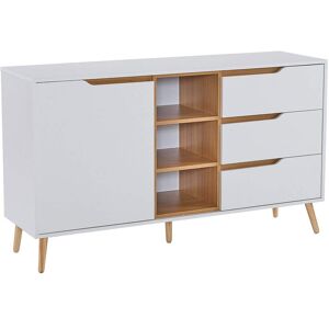 Buffet blanc moderne avec 5 étagères 3 tiroirs et une porte 140x40x80,5cm RASETDESIGN SIMPLE ET ÉLÉGANT : Armoire blanche avec pieds en bois massif et compartiments de rangement ouverts en grain de bois. La simplicité moderne convient à une variété de styles de vie. Les poignées fendues et dissimulées sont symétriques et les détails expriment l'élégance et la fonctionnalité.RANGEMENT MULTIFONCTIONNEL : Le compartiment de gauche est doté d'étagères qui permettent un rangement flexible des petits et grands objets. Les 3 tiroirs de droite offrent un espace de rangement privé, tandis que les 3 étagères en bois du milieu sont idéales pour l'exposition et le rangement.MATÉRIAUX DE QUALITÉ ET CONSTRUCTION SOLIDE : Fabriqué en placage blanc de haute qualité, durable et facile à nettoyer. Les pieds en bois massif assurent la stabilité et prolongent la durée de vie du meuble, ce qui en fait une expérience sûre et fiable.CONCEPTION ANTI-BASCULEMENT : équipé d'accessoires anti-basculement pour assurer la sécurité de la famille, particulièrement adapté aux familles avec enfants ou animaux domestiques.Charnières réglables : Les charnières réglables multidirectionnelles de haute qualité garantissent une installation précise et une durabilité.MULTI-SCÉNARIO : Mesurant 140 cm x 40 cm x 80,5 cm, il peut être utilisé comme buffet dans la salle à manger, comme meuble de rangement dans le salon ou comme vitrine dans le bureau, apportant beauté et praticité à votre maison. Caractéristiques :Matériel : MDFDimensions du produit :Hauteur : 80,5 cmLargeur : 40 cmProfondeur : 140 cmDimensions du colis 2 colis :84,33 * 66,04 * 14,99 cm152,91 * 53,98 * 12,45 cmPoids net/brut 45/50,45 kgGarantie :2 ans (voir politique de garantie) Remarque :-Le produit sera envoyé depuis dépôt en Allemagne, la livraison prendra environ 7-10 jours ouvrés pour recevoir. -Veuillez mesurer votre espace et la taille avant d'acheter. Merci pour votre compréhension!-Le produit sera envoyé depuis l'Allemagne en 2 colis, parfois les colis arrivent à des dates différentes, veuillez-vous assurer d'avoir reçu 2 colis avant de l'assembler !