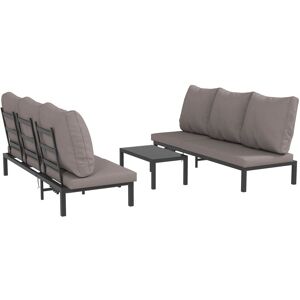 Description:Ce superbe lot de 2 bains de soleil grand confort (matelas inclus) accompagné d'une jolie table basse avec plateau en verre trempé sublimera votre extérieur ! Au design très épuré et très confortable (dossier inclinable multipostions, etc…), vous pourrez profiter pleinement des belles journées en duo !caractéristique:● Salon de jardin extérieur composé d'un lot de 2 bains de soleil grand confort + 1 table basse avec plateau en verre trempé; ● Structure robuste en aluminium : matériaux de qualité résistant aux rayons UV, à l'humidité et ne nécessitant pas d'entretien particulier; ● Chaise longue jardin de extérieur avec dossier inclinable multipositions (5 au choix) afin de s'adapter à toutes les situations : lecture, sieste, bain de soleil, etc.; ● Plateau de table basse haut de gamme en verre trempé 5 mm; ● Salon de jardin idéal pour installation sur une terrasse, autour d'une piscine, sur un balcon, dans le jardin, etc.; ● Recommandation : veuillez protéger vos bains de soleil si inutilisation afin d'optimiser leur durée d'utilisation; ● Montage facile à l'aide du manuel d'assemblage illustré fourni;Spécification:● Couleur : gris; ● Matériaux : aluminium, verre, polyester; ● Dimensions du transat : 180L x 64l x 83H cm; ● Dimensions transat à plat : 180L x 64l x 30H cm; ● Hauteur d'assise : 30 cm; ● Dimensions du dossier : 62L x 59l cm; ● Dimensions de la table basse : 90L x 50l x 37H cm; ● Charge max. : Chaise longue : 360 kg, Table : 50 kg; ● Hauteur du dossier par rapport au sol : 30 cm, 50 cm, 65 cm, 76 cm, 83 cm; ● Certifications : EN581, EN12150; ● Réf. : 84G-337V00CG;contenu du colis:● 2 x Chaises longues; ● 1 x Table basse; ● 2 x Coussins; ● 1 x Manuel;