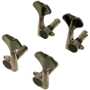 Gotoh GB707 2L/2R CK Bass Tuners, Set de 4 mécaniques, Pour basse électrique, 2 gauches/2 droites, Mécaniques fermées, Démultiplication: 1:20, Longueur des axes (jusqu'au trou de corde): 24 mm, Pour perce d'un diamètre de 14 mm, Vis de fixation (90°) et écrous incl., Finition: Cosmo Black, Fabriqué aux Japon