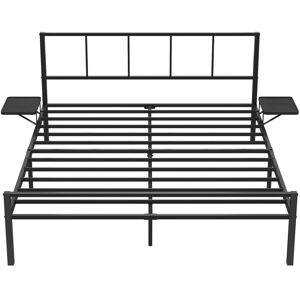 Les points forts de ce cadre de lit double en bref :- Étagères pratiques : Les 2 étagères latérales de ce lit offrent de la place pour des livres ou un réveil.- Grand espace de rangement : Utilisez l’espace sous le lit pour glisser des boîtes de rangement. De plus, l’aspirateur robot passe facilement en dessous.- Fabrication robuste : Les tubes métalliques et les lattes robustes assurent sa stabilité et sa durabilité.- Montage facile : Le montage de ce cadre de lit est un jeu d’enfant.- Pas de rayures, pas de bruits : Les patins et le coussin en mousse réduisent les bruits et évitent les rayures.Caractéristiques :- Couleur : Noir mat- Matériaux : Acier- Dimensions : 207,6 x 161 x 87 cm (L x l x H)- Poids : 22 kg- Capacité de charge statique maximale : 450 kgLivraison :- 1 x Cadre de lit- 1 x Kit de montage- 1 x Mode d’emploi- Pas de livraison en Corse.Merci de votre compréhension.Précautions de VASAGLE :- Assurez-vous que toutes les pièces et les vis sont bien fixées avant l'utilisation.- Le matelas n'est pas compris dans la livraison.