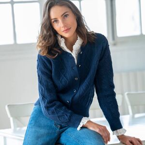 Taille• Longueur 57 cm environComposition• Maille fantaisie 46% acrylique, 29% polyamide, 25% polyesterDescription• Col rond• Entièrement boutonné• Manches longues• Poignets resserrés• Jeu de torsades aux manches, devant et dos• Maille fantaisie mousseuse, moelleuse et douce