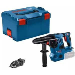 Perforateur sans-fil pour perforer tout en puissance, avec mandrin interchangeable Performances remarquables grâce au moteur sans charbon et au mécanisme de frappe délivrant une force de frappe de 3,3 J Sécurité maximale grâce aux systemes Vibration Control et KickBack Control Maîtrise parfaite et adaptation parfaite a chaque application avec les trois modes de fonctionnement (Auto, Favorite, Soft) Fonctions et principales caractéristiques Ce produit comprend L-BOXX 238 1 600 A01 2G2 Calage L-BOXX 1 600 A02 SJ3 Mandrin interchangeable SDS plus 2 608 572 213 Poignée auxiliaire 2 602 025 191 Butée de profondeur 1 613 001 009 Chiffon de nettoyage 1 619 200 413 Tube de graisse (réf. piece de rechange 1 615 430 010) GDE 18V-16 Professional 1 600 A00 51M CARACTÉRISTIQUES TECHNIQUES Force de frappe (selon EPTA 05/2016)* 3,3 J Fréquence de frappe a vitesse de rotation nominale* 4.220 cps/min Tension de la batterie* 18,0 V Poids sans batterie* 3,4 kg Porte-outils SDS plus Dimensions de l’emballage (longueur x largeur x hauteur)** 357 x 442 x 151 mm Plage de perçage de perçage dans le béton avec forets pour perforateur 4 – 28 mm Plage d’utilisation optimale dans le béton avec forets pour perforateur 8 – 18 mm O de perçage maxi. dans le métal 13 mm O de perçage maxi. dans le bois 30 mm GBH 18V-28 CF PROFESSIONAL: INFORMATIONS COMPLÉMENTAIRES Points forts du produit Le perforateur sans-fil Bosch GBH 18V-28 CF Professional est conçu pour ceux qui souhaitent concilier les performances du filaire et la liberté du sans-fil. Ce perforateur est doté d’un puissant moteur sans charbon et d’un mécanisme de frappe délivrant une force de frappe de 3,3 J. L’écran de contrôle facile a lire affiche l’état de l’outil et offre le choix entre trois modes de fonctionnement (Auto, Favorite, Soft) pour une maîtrise parfaite quelle que soit l’application. Le mandrin automatique interchangeable réduit les durées d’immobilisation. Avec le module de communication (GCY 42) installé, le GBH 18V-28 CF peut etre connecté a l’application Bosch Toolbox pour adapter certains réglages aux besoins de l’application. Les systemes Vibration Control, KickBack Control et la compatibilité avec le dispositif d’aspiration GDE 18V-16 garantissent une protection optimale de l’utilisateur. Équipement et application Ce perforateur est idéal pour perforer dans le béton, la pierre et la maçonnerie. Elle est compatible avec toutes les batteries et tous les chargeurs du Professional 18V System Bosch. Pour travailler dans un environnement plus sain sans poussiere, il est possible de raccorder facilement le dispositif d’aspiration GDE 18V-16 Professional. Également compatible avec AMPShare, l’alliance batteries multimarques. Informations complémentaires Il dispose aussi d’un crochet de rangement et d’un éclairage LED.>