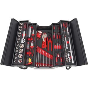 La mallette à outils garnie HBM de 85 pièces est idéale pour tout artisan·e souhaitant travailler de manière organisée. Tous les outils sont rangés de façon claire dans des inserts en mousse qui les protègent des chocs et les empêchent de glisser. Cela prolonge la durée de vie de ton équipement. La mallette comporte cinq compartiments, chacun avec sa place dédiée – des douilles aux clés Allen. Elle se transporte facilement pour une intervention rapide, et elle constitue également une excellente réserve mobile. Ton atelier reste bien équipé, tout en ayant une solution toujours prête à l’emploi.