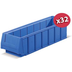Lot de 32 bacs tiroirs en plastique Multibox 400x120 Caractéristiques > Bac cloisonnable. Quantité maximum de séparateurs (en option) : 6 par bac. > Large porte étiquette frontal. Etiquette fournie > Coloris Bleu. Dimensions : > Internes : L.98 x P.358 x H.89 mm. > Externes : L.120 x P. 400 x H.100 mm > Poids du lot : 14.5 kg Options : possibilité de compartimen