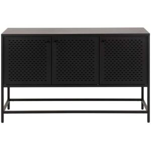 Le buffet est une façon originale d'améliorer votre espace et d'obtenir en même temps un grand espace de rangement. Placé dans votre séjour ou dans votre salon sous un écran TV, il apportera une place de choix à vos objets déco ou une lampe design posés sur le dessus. Son plateau intérieur intermédiaire offre une belle opportunité de stockage de votre vaisselle ou plats de présentation lors de vos petits moments de convivialité. La structure en acier est gage de solidité alors que les portes ajourées de la façade mettent à l'abri des regards indiscrets le contenu avec esthétique. Le coloris noir mat et la ligne épurée du meuble bas met en avant un style industriel moderne et élégant. Le piétement haut, muni de patins en plastique, conserve un côté aérien appréciable à l'œil, qui s'intègre dans les environnement de styles différents, tout en respectant vos sols.Disponible en 160 cm pour les pièces plus spacieuses mais aussi en version armoire, bibliothèque, buffet haut, console, étagères diverses et vitrines, le buffet bas complète la gamme HARLOW pour vous laissez l'opportunité d'aménager votre lieu de vie selon vos besoins et vos envies.Ce meuble peut être livré en livraison confort mais cette prestation n'intègre pas son montage. Veuillez contacter le service client pour une demande de devis de montage. Description technique : Dimensions : L 125 x P 40 x H 75cmPoids : 24 kgMatières : métalColoris : NoirHauteur des pieds : 8 cmLivré monté : NonNb de colis : 1Dimensions colis 1 : L 131 x P 48 x H 15 cm, 24 Kg