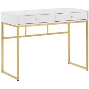 Un meuble avec de l'élégance qui introduira du glamour dans votre intérieur. Il peut très bien servir de bureau à domicile, offrant de l'espace pour votre ordinateur portable et vos documents, ou comme table console, présentant des pièces décoratives et des plantes. Doté de deux larges tiroirs, vous pouvez ranger tous les articles dont vous avez besoin à portée de main. Les dimensions compactes de la table la rendent conviviale pour les petits appartements.