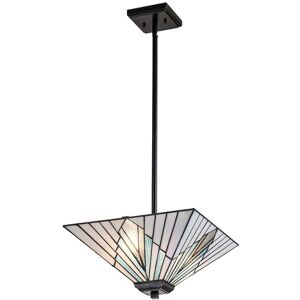 Apportant une simplicité moderne à l'éclairage en verre art déco de style Tiffany, la famille Alderley se distingue par des lignes droites précises et une palette de couleurs raffinée. Lorsque les luminaires sont allumés, les panneaux bleus révèlent une magnifique teinte turquoise, tandis que les panneaux texturés scintillent élégamment. Les composants métalliques sont finis dans un riche bronze vieilli, offrant un style classique art déco.