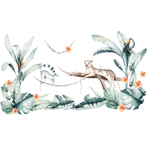 Des stickers animaux pour votre déco ! Avec les stickers muraux animaux multicolore et ce Stickers géants animaux de la jungle, vous vous approprierez enfin votre intérieur ! Dimension du sticker : Cette grande planche de H135 x L120 cm, contient 2 planches H90 x L60 cm et 2 planches H45 x L60 cm L