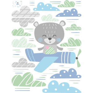 Des stickers animaux pour votre déco ! Avec les stickers muraux animaux multicolore et ce Sticker ourson aviateur dans les nuages, vous vous approprierez enfin votre intérieur ! Dimension du sticker : La planche de H60 x L45 cm, le sticker avion mesure H15 x L35 cm – le sticker nounours mesure H25