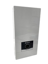 Chauffe-eau instantané électrique Vaillant 0010023778 régulateur de température réglable en continu pour une température de sortie de 30 à 55 °C jusqu'à la limite de puissance Affichage de la température à 7 segments contrôle électronique de puissance Système d'installation PRO I Cadre pliable et capot rotatif convient aux systèmes de tuyauterie en plastique selon DIN 1988 et DIN 16892/16893 La protection contre les jets d'eau IP 25 permet une installation sans restriction dans la zone de protection 1 Housse de protection résistante aux UV (pas de jaunissement dû aux rayons UV) Détection automatique des bulles d'air sur tous les appareils électroniques protection anti-brûlure réglable avec raccord d'eau froide R 1/2 avec robinet d'arrêt d'eau froide Raccord d'eau chaude R 1/2 Plaque de montage Gabarit de montage Matériel de fixation Instructions d'utilisation et d'installation Fiche technique du produit Étiquette d'efficacité énergétique Connexion haute tension (3~/400V) requise. L’approbation de l’opérateur du réseau local peut être requise. Installation uniquement par du personnel qualifié.