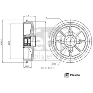 Cercle de percage -ø [mm]: 108. Cotes max.de rectification de tambour de frein [mm]: 204,5. Côté d'assemblage: Essieu arrière. Diamètre du centrage [mm]: 55,8. Diamètre extérieur [mm]: 247,13. Diamètre intérieur [mm]: 203. Fabricant: FEBI. Index: FE194784. Jante, nombre de trous: 4. Largeur [mm]: 46. Numéro du fabricant: 194784. Poids [kg]: 7,06. Épaisseur [mm]: 71,4.