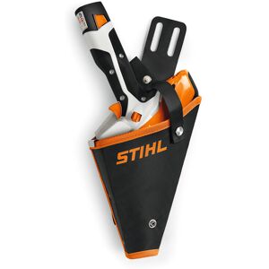 L’étui pour GTA 26 a spécialement été conçu pour y glisser la scie de jardin et ainsi garder les deux mains libres pour d’autres interventions. Sa sangle-cuisse fixe l'étui pour plus de confort et de stabilité. Le stockage est sécurisé grâce à un rabat supplémentaire qui retient l'outil dans l’étui.