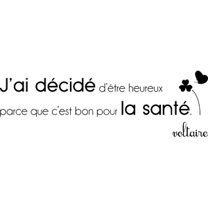 Des stickers muraux citations pour la déco ! Avec les stickers citation et ce sticker J'ai décidé d'être heureux...Voltaire, vous pourrez enfin décorer l'intérieur de votre cuisine à votre guise avec leur aide ! Où coller cet autocollant déco ? Ces stickers proverbes d'hommes célèbres seront parfai