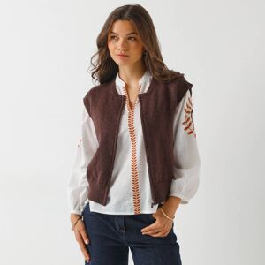 Taille• Longueur 56 cm environComposition• (**)Jersey endroit 100% polyester; dont 56% de polyester recycléDescription• Maille chaleureuse• Volume loose actuelle et confort• Col rond fini par un bord-côte• Emmanchures finies par un bord-côte• Fermeture zippée cachée devant• Base légèrement blousante finie par un bord-côteBlancheporte s’engage• En confectionnant une partie de ce produit avec du polyester recyclé(**), afin de produire moins de déchets et de contribuer à la préservation des ressources naturelles.