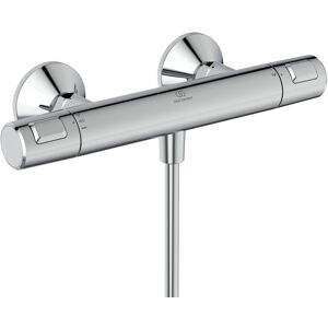Ideal Standard Idealrain Ideal Standard Idealrain A7203AA AP DN 15 Clapet anti-retour DVGW à sécurité intrinsèque corps Cool Connexions en S recouvertes de rosaces métalliques coniques (réglables de 137-163 mm) Saillie de 80 mm Poignées en plastique Cartouche thermostatique avec élément d'expansion en cire Fonction anti-calcaire Réglage de la température de l'eau chaude avec protection anti-brûlure Régulation du volume d'eau avec bouton ECO économie et rondelles d'étanchéité en céramique Cartouche RV côté eau chaude avec soupape de surpression intégrée pour décompression (protection de la vanne) à des pressions supérieures à 16 bar Comportement au bruit DIN 4109 2000 composé de Barre de douche Fixation réglable en hauteur avec bouton poussoir pivotant Idealrain 3 fonctions Idealrain M3 Ø 100 mm Fonction anti-calcaire Flexible de douche Idealflex 1600 mm
