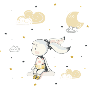 Des stickers animaux pour votre déco ! Avec les stickers muraux animaux multicolore et ce Stickers animaux lapine assis sur un nuage face aux étoiles, vous vous approprierez enfin votre intérieur ! Dimensions des stickers animaux : Ce sticker déco chambre enfant se compose de : 1 sticker lapin, 1 s
