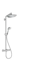 hansgrohe Croma Select S Ensemble de douche multi Numéro d'article 26561400 Type de jet: jet de massage, SoftRain, IntenseRain Changement de Select pratique Select bouton Select Taille de la pomme de douche: 110 mm pivotant côté douche contre la torsion gênante du tuyau de douche Angle d'inclinaison réglable de 90 °, le curseur pivote à gauche et à droite ainsi qu'en haut et en bas Débit maximum (à 3 bar): 16 l / min support mural en plastique chromé
