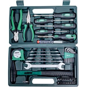Le coffret d’outils Mannesmann 47 pièces est une sélection complète et bien pensée pour toutes les tâches. Il contient des tournevis à embout magnétique, un testeur de tension, diverses pinces, un marteau et un mètre ruban. Fabriqués en acier au chrome-vanadium, les outils sont durables et fiables. Des clés plates, clés Allen et embouts variés complètent l’ensemble pour une utilisation polyvalente. Chaque outil est rangé de façon ordonnée, prêt à l’emploi – parfait pour les réparations à la maison ou en déplacement.