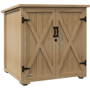 Description:Cette armoire abri de jardin équipée de plusieurs espaces de rangement est le mobilier idéal pour ranger vos outils et vos accessoires de jardin. Cet abri de jardin résiste parfaitement aux intempéries sa fabrication en sapin. L'accès est facilité par les 2 portes avec poignées.caractéristique:● Nombreux espace de rangement : 1 étagère réglable en hauteur pour ranger facilement divers articles; ● Conception et fabrication en bois de sapin massif enduit pour un usage pérenne; ● Cabane de jardin en bois en conception surélevée protège les éléments intérieurs des conditions humides; ● Doubles portes dotées de deux poignées pour un accès facile aux outils; ● Toit incliné en asphalte pour une meilleure protection; ● Montage facile grâce à la notice d'assemblage illustrée fournie;Spécification:● Couleur : finition bois naturel; ● Matériau : bois de sapin; ● Dimensions totales : 77,5L x 88l x 83/90H cm; ● Dimensions intérieures : 76L x 66l x 81H cm; ● Dimensions porte simple : 36,5L x 77,5H cm; ● Dimensions de l'étagère : 76L x 66l cm; ● Hauteur des pieds : 6 cm; ● Charge max. recommandée : 40 kg (étagère), 70 kg (fond); ● Ref : 84G-416V00ND;contenu du colis:● 1 x Armoire de rangement pour le jardin; ● 1 x Kit de vis; ● 1 x Manuel;