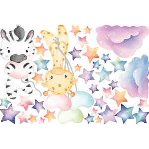 Des stickers animaux pour votre déco ! Avec les stickers muraux animaux multicolore et ce Stickers animaux aquarelles girafe et zèbre, vous vous approprierez enfin votre intérieur ! Dimensions des stickers animaux : Ce sticker déco chambre enfant se compose de : 1 sticker zèbre, 1 sticker girafe av