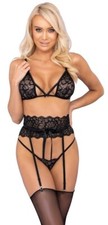 Ensemble de Lingerie jarretelles en dentelle florale avec tour de cou pour femmes, intimes, soutien-gorge à armatures et tongs, ensemble de sous-vêtements pour dames, 2024