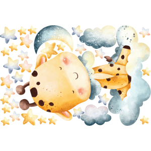 Des stickers animaux pour votre déco ! Avec les stickers muraux animaux multicolore et ce Stickers animaux girafe dans le pays de rêves, vous vous approprierez enfin votre intérieur ! Dimensions des stickers animaux : Ce sticker déco chambre enfant se compose de : 1 sticker girafe sur le nuage, 1 s