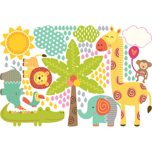 Des stickers animaux pour votre déco ! Avec les stickers muraux animaux multicolore et ce Stickers animaux d'Afrique dans la savane, vous vous approprierez enfin votre intérieur ! Dimensions des stickers animaux : Ce sticker déco chambre enfant se compose de : 1 sticker soleil, 1 sticker rhinocéros