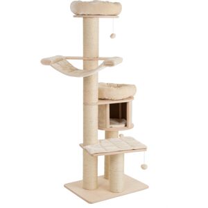 Les troncs carrés en solide sisal naturel offriront à votre chat suffisamment de surface pour faire ses griffes. Il pourra s'étirer sur les longs troncs en sisal ou grimper jusqu'à la plate-forme d'observation et s'installer sur le panier douillet...