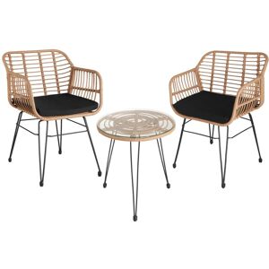 Découvrez l'exquis salon en rotin Modica de tectake et transformez votre jardin, balcon ou terrasse en une luxueuse oasis de bien-être.Ce groupe de sièges en plastique de haute qualité et à l'aspect rotin raffiné offre de la place pour deux personnes et allie confort et élégance.Les deux chaises ergonomiques s'adaptent parfaitement à la forme du corps, ce qui vous permet de rester assis pendant des heures en toute décontraction. La table d'appoint pratique complète l'ensemble et offre suffisamment de place pour vos boissons ou vos livres. L'acier laqué époxy confère à l'ensemble stabilité et longévité, tandis que les embouts en plastique antidérapants et les pieds à vis réglables en hauteur assurent une bonne stabilité sur toutes les surfaces.Le salon en rotin Modica se caractérise par son montage facile : en un rien de temps, il est prêt à l'emploi et à vous accueillir pour un moment de détente. Il présente en outre une capacité de charge très élevée de 120 kg par chaise.Ce salon de jardin est parfait pour les événements en plein air, les soirées agréables sur le balcon ou pour s'asseoir avec style sur la terrasse. La combinaison d'un design esthétique et d'une grande fonctionnalité fait de Modica le choix idéal pour votre maison. Caractéristiques Techniques: Chaise :Dimensions totales (lxPxH) : env. 56 x 77 x 85 cmAssise (lxP) : env. 52 x 50 cmDossier (lxH) : env. 50 x 60 cmHauteur d'assise : env. 40 cmRéglage des pieds en plastique : env. 1,3 cmDiamètre du tube du cadre : env. 2,5 cmCapacité de charge : 120 kgPoids : env. 5,6 kgMatériaux : acier laqué époxy, polypropylèneTable :Dimensions totales (LxlxH) : env. 38 x 38 x 39 cmPlateau de table (Lxl) : env. 38 x 38 cmDiamètre du tube du cadre : env. 2,5 cmCapacité de charge : 20 kgPoids : env. 1,8 kgMatériaux : acier laqué époxy, polypropylène