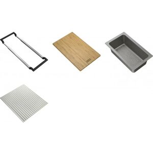 ALL-IN SET3 comprenant le support téléscopique, planche a découper BAMBOU 320x200x18mm,panier égouttoir PVC noir sanitized 297x173x95mm, tapis pliable silicone gris 400x350x6,5mm, emballé dans un carton "FRANKE", Garantie 2 ans Information produit Matériau Aucun Sous catégorie accessoires Planche a découper Sous catégorie accessoires Corbeille a vaisselle Sous catégorie accessoires Universel>
