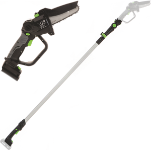 Activation à batterie, Tige de rallonge- longueur 147 - 203 cm, Pays de fabrication Chine, Poignée soft grip, Configuration de l'élagueuse sur perche / manuelle, Équipement sans batterie ni chargeur, Batterie incorporée, Configuration Sur perche, Matériau de la perche aluminium , Type de moteur électrique à induction, Voltage 20V, Type de batterie lithium (Li-Ion), Pas de chaîne 1/4'', Longueur de la lame 15cm, Type de lame standard, Lubrification du dispositif de coupe Manuel avec pompe, Ø Branche - Max 130mm, Tendeur de chaîne rapide, Bouton rotatif démontage rapide guide/chaîne, Démontage rapide chaîne, Perche télescopique, Poids 2.2kg
