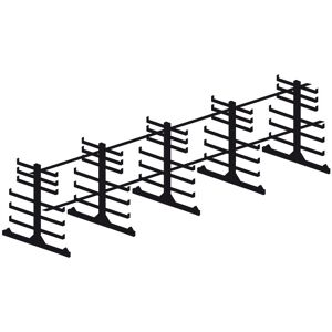 Rayonnage Cantilever galvanisé, léger, horizontal, Double Face. Elément suivant Montants galvanisés. Bras support réglables tous les 33mm. Dimensions : Hors tout : L.1270 x P.1290 x H.1990 mm Poids : 560 kg Composition : - 1 montant H.1979 mm + base H.600 + 600 mm - 2 traverses L.1200 mm - 4 bras simple L. 320 mm - 4 bras simple L. 500 mm <
