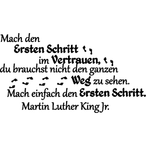Des stickers muraux citations pour la déco ! Avec les stickers citation et ce Sticker citation Den ersten - Martin Luther King Jr., vous pourrez enfin décorer l'intérieur de votre cuisine à votre guise avec leur aide ! Ce sticker Mach den ersten - Martin Luther King Jr. est idéal pour décorer le mu