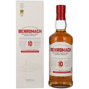 Le Benromach 10 Years Old est un single malt classique du Speyside qui reflète la fabrication traditionnelle du whisky dans sa forme la plus pure. Fabriqué à la Benromach Distillery, une distillerie indépendante avec une longue histoire, ce whisky mi Couleur : ambre chaud. Nez : Pommes rouges fraîches, sucre de malt, vanille et une fine note de tourbe. Goût : Corsé avec des notes de caramel doux, de chocolat noir, de fruits de sherry et de fumée douce. Finale : longue, légèrement épicée avec d