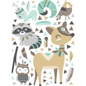 Des stickers animaux pour votre déco ! Avec les stickers muraux animaux multicolore et ce Stickers animaux déguisés en indiens, vous vous approprierez enfin votre intérieur ! Dimension du sticker : La planche de H65 x L50 cm, le sticker cerf mesure H50 x L35 cm – le sticker hibou mesure H20 x L10 c